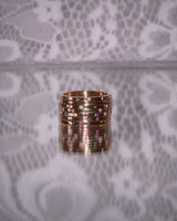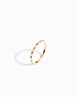 La bague Arc-en-ciel de la collection Je T’aime Temps est façonnée à la main en or jaune 18 carats et 16 pierres, rubis, émeraude et saphirs multicolores.