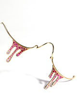 La parure Lacrima est réalisée à la main en or jaune 18 carats, sertie de saphirs rose soigneusement sélectionnés. Son système d’attache innovant assure un maintien discret et confortable.