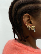 Cette boucle d’oreille épouse gracieusement la courbe de l’oreille, telle une ponctuation sensible du visage.