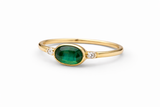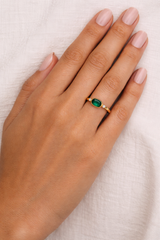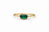 Je t’aime temps - Tourmaline Ovale en or jaune 18 carats met à l’honneur une pierre verte ovale délicatement sublimée par deux diamants lumineux.